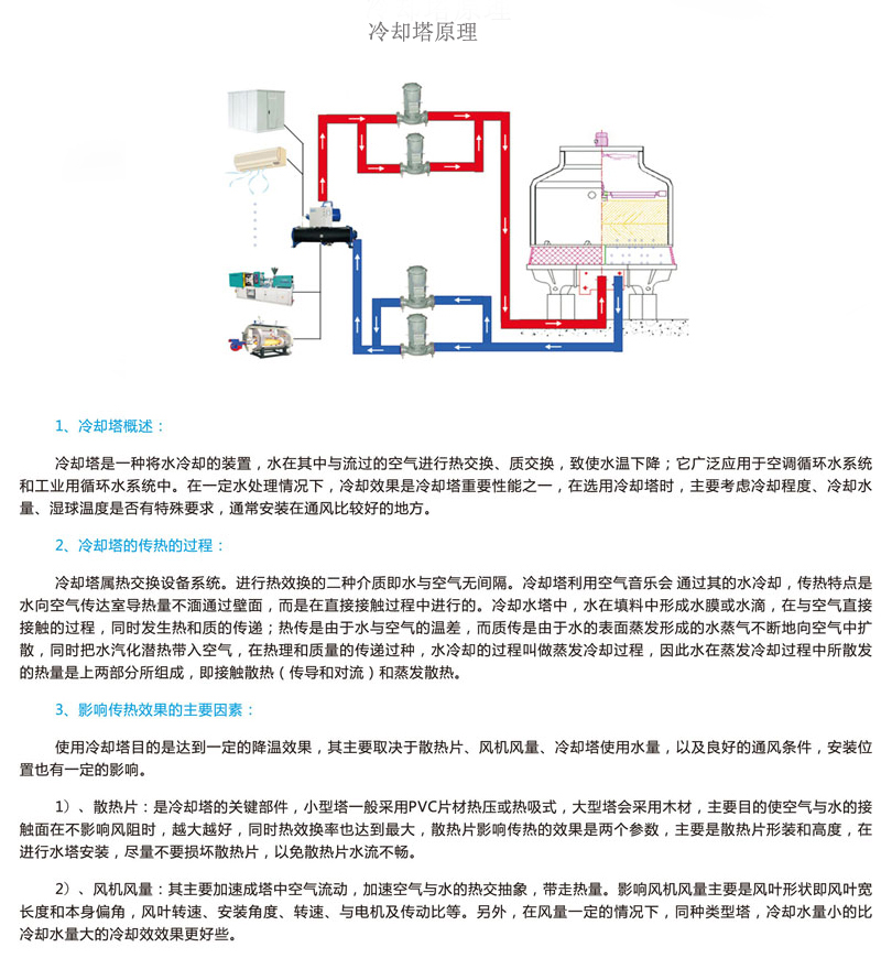 特點(diǎn):降溫溫差10-25°C,占地面積小,噪音低,外形更美觀,全塔采用耐高溫材料。